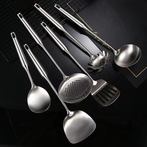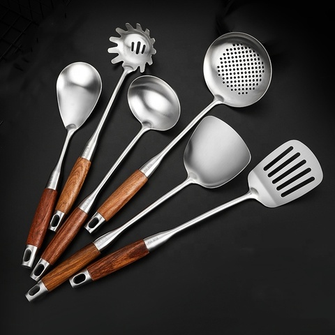 304 paslanmaz çelik mutfak eşyası seti tüm Metal pişirme araçları katı kaşık, Spatula, çorba kepçesi, Skimmer