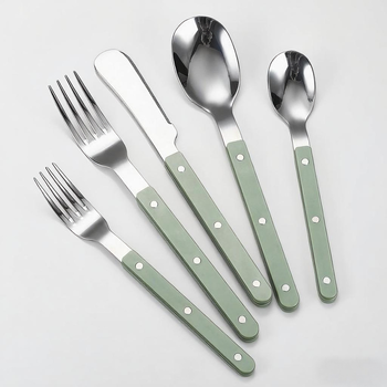 Retro Vintage sofra takımı Set Morandi yeşil & krem kolu paslanmaz çelik gümüş perçinler ile düğün çatal ev Bistrot için